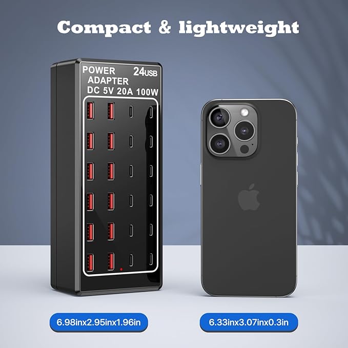 - ⚡【24 Port Charging Station】USB Charger Station Block with 12-USB-C ports and 12-USB-A ports(Each port max 2.4A), allowing multiple devices to charge simultaneously, with a total output of up to 100W. The USB C Charger Block provides the fastest charging speed and intelligently detects the power demand of each port of the connected device, ensuring safe and fast charging of the charger.