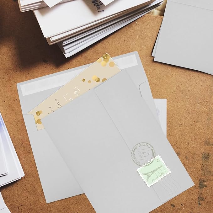 - Sealing: This is a huge time-saving envelope, each envelope comes with a separate tape, just tear off the protective strip, press, and seal it. Easy to seal peeling and sealing and closing operations, this type of adhesive is ideal for commercial applications, wedding announcements, and mailing.
