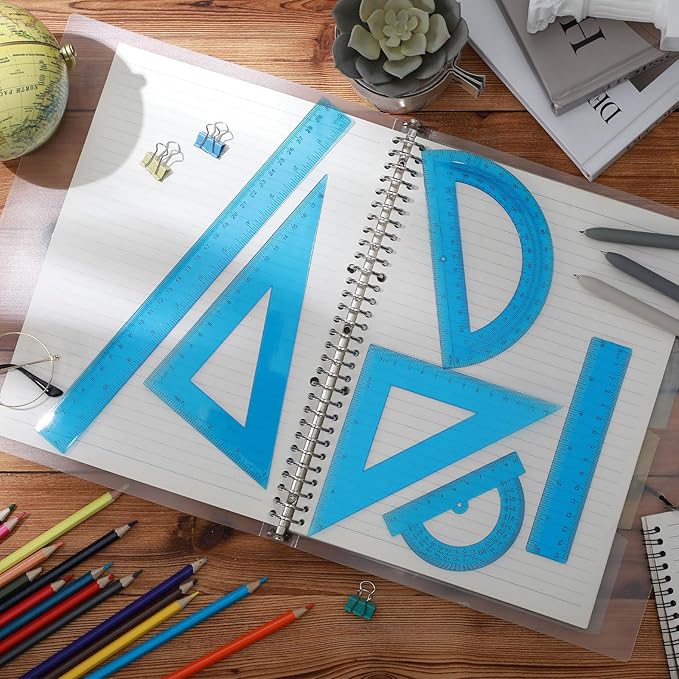 - Complete math tool set: you will be provided with 2 protractors of 15.5 cm and 10.4 cm, 2 triangle rulers of 45 degree and 60 degree, 2 straight rulers of 6 inch/ 15 cm and 12 inch/ 31 cm, totally 6 pieces; The complete combination meets the needs of various occasions, you can choose the right ruler to work according to your needs