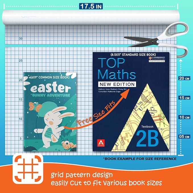 - The clear contact paper roll measures 17.5 inch wide by 10 feet long, with a 2.5 mil balanced thickness sticky protector film for books crafts recommend