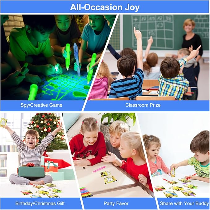 - All-Occasion Gift Set: A hit at birthday parties, Classroom prize, Halloween treats, or Christmas stocking stuffers, Goodie bag stuffers, these UV pen sets are the go-to for educational and fun party favors. Great for the end of school year gift