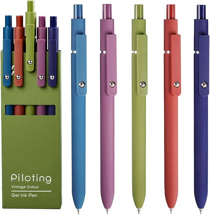 Gel Pens, 5Pcs 0.5mm Fine Point Black Ink Pens With Smooth Wirting,Office Desk Accessories,Quick Dry Pens For Journaling,Ballpoint for School Supplies, Gift for Women Men Student(Retro)
