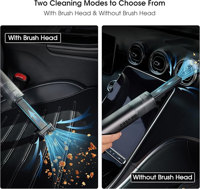 - 17000Pa Powerful Suction: Equipped with a powerful motor running at 100,000 revolutions per minute, the VSGO Handheld Vacuum Cleaner outperforms other products on the market by more than double, quickly clearing various debris inside the desktop, digital devices, car crevices.