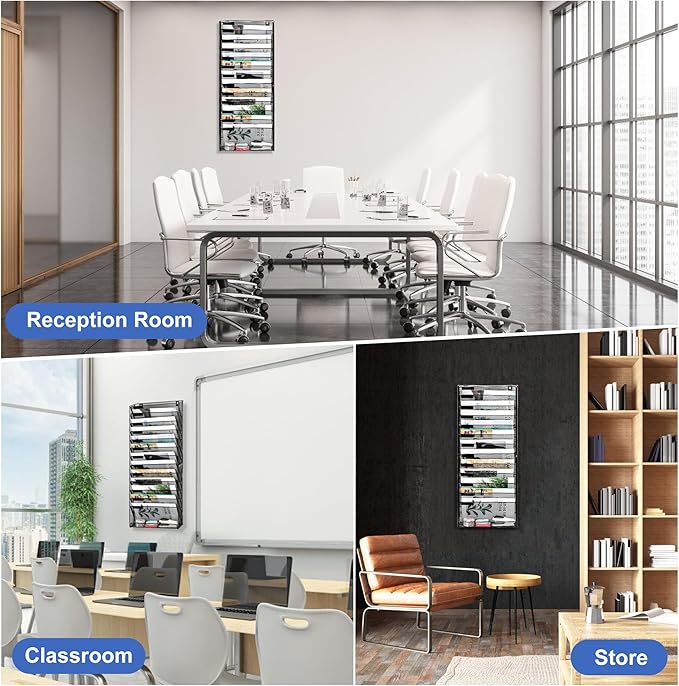 - Space-Saving Vertical Design: Compact wall file holder (12.79”x4.33”) frees desk space. Bottom tray organizes pens/keys. Perfect for dorms, small offices, retail counters.