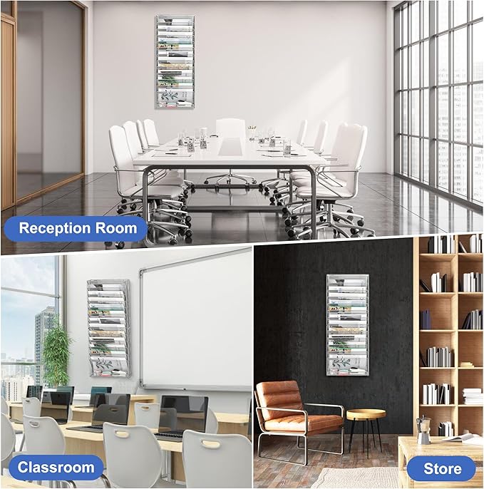 - All-in-One Mail Center: Mail organizer wall mounted stores A4 files, catalogs, outgoing mail. Doubles as brochure display for clinics/workshops. Converts clutter to order.
