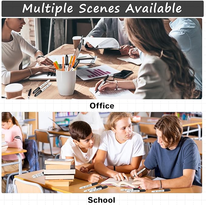 - Multi Purpose - Whether you're marking books, drawing, or creating crafts, these black permanent markers are a versatile tool. The marker pen set is ideal for use in schools, homes, classrooms, and more, making it a great choice for school supplies and office supplies.