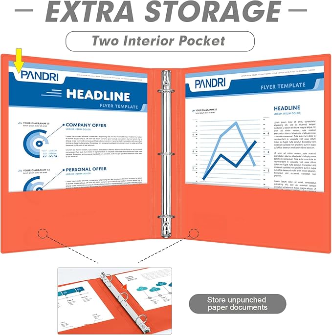 - LARGE CAPACITY: With a spacious 2 inch round-ring mechanism, this binder can hold a generous amount of documents, and the 2 interior pockets can also store unpunched documents