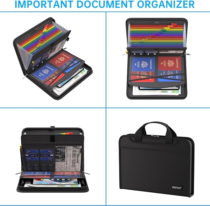 - Innovative Humanized Design: Design with a strong grab handle for carrying everything you needed easily. Featuring a double zipper for convenient opening and closing,you won't have to worry about losing any important documents. The included colorful labels make categorizing your files effortless. The fireproof file folder is suitable for business, travel, office, school, home storage, you can be 100% sure that your important documents are in a safe place.