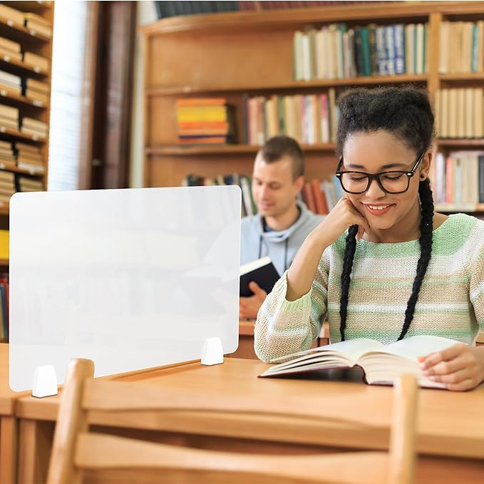 - FROSTED MATERIAL: this white desktop screen material is frosted acrylic. Compared with ordinary transparent partitions can be good to block the view of others and protect the privacy of their space, while not blocking the light, can have a bright work study space!