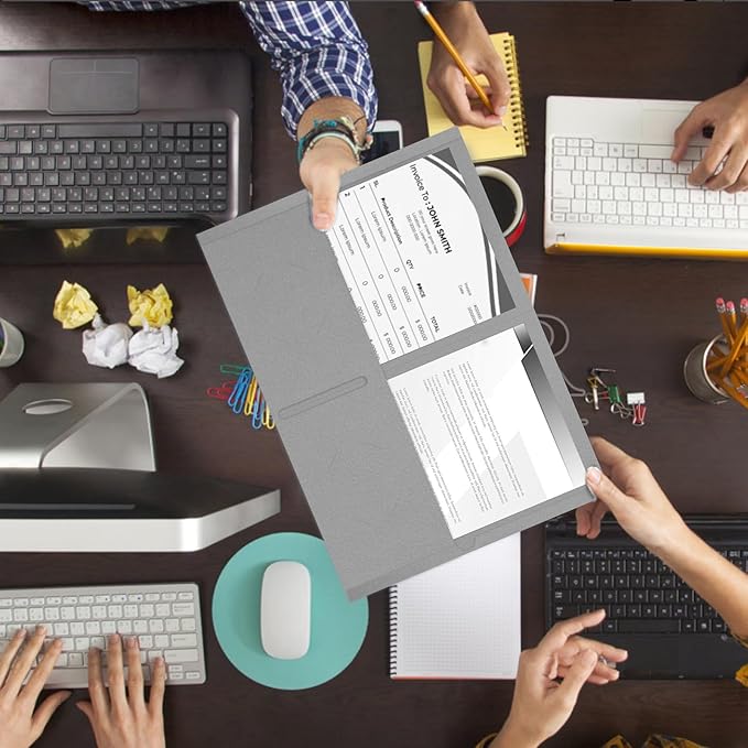 - TWO POCKET FOLDER SET: 50 Pack grey paper folders with 2 inner pocket and 2 business card slots. Deep pocket design can provide secure storage space for papers, files or other important materials