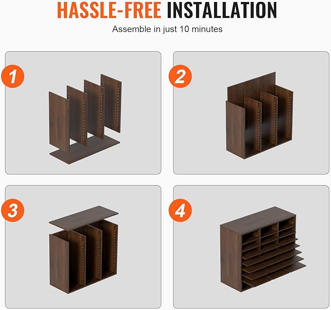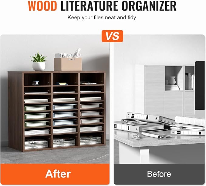 - Space Maximization: With 24 compartments organized in 8 rows and 3 columns, the VEVOR 29''x12''x24.4'' wood literature organizer provides extensive storage capacity for various items, ensuring a clutter-free desktop.