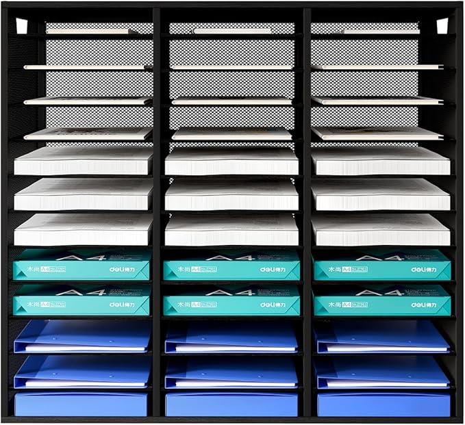 - ▶Amazing Storage Capacity and Space-saving. The literature organizer has 36 compartments, which can help you sort, store and organize literature, magazines, comic books, files, student assignments, binders, catalogs, diaries, papers and documents on your desk or counter quickly and easily and get you valuable workspace back