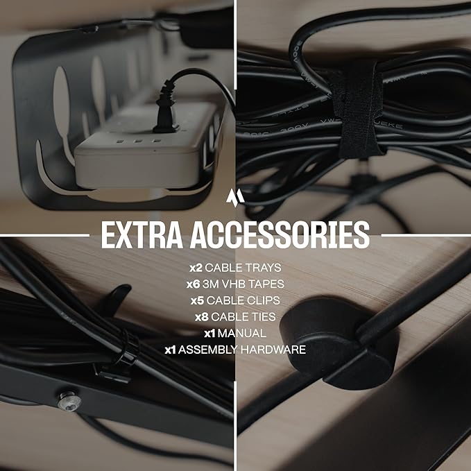 - COMPLETE CABLE MANAGEMENT SOLUTION - Equipped with a variety of accessories, our under table cable management tray ensures efficient organization of your cables, keeping your workspace tidy and functional.