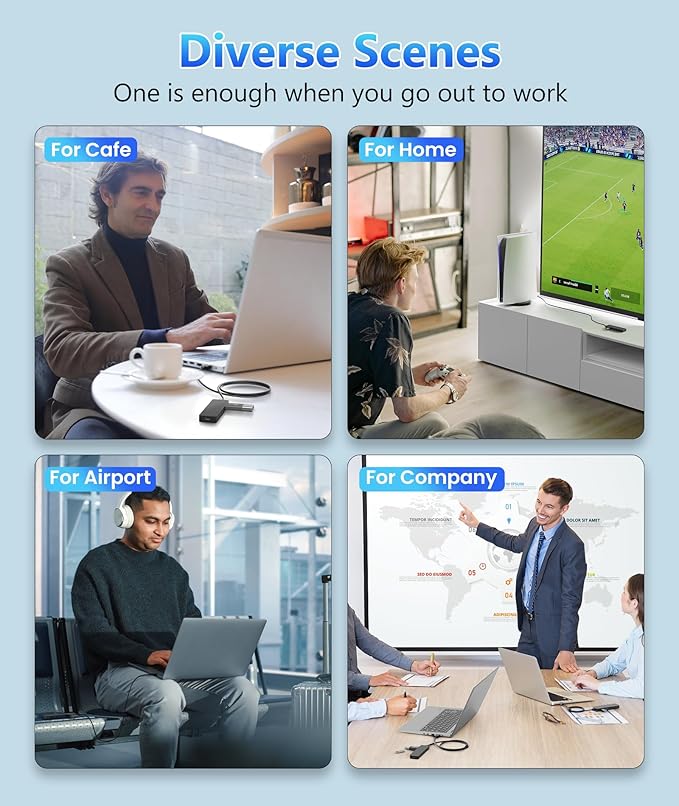 - 【1CM Large Pitch Design】The USB Expansion Hub adopts 1CM large spacing design, Easily connect large USB drives. Plug and play, no driver needed. Build-in advanced chip with good thermal design, keeping your devices and data safe.