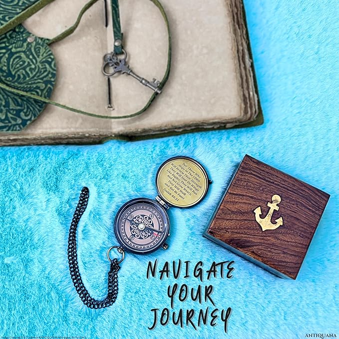 Brass Directional Engraved Compass, Baptism Gifts for Boys Girls, First Communion, Christian Gifts for Men, First Confirmation Gifts for Boys, Inspirational