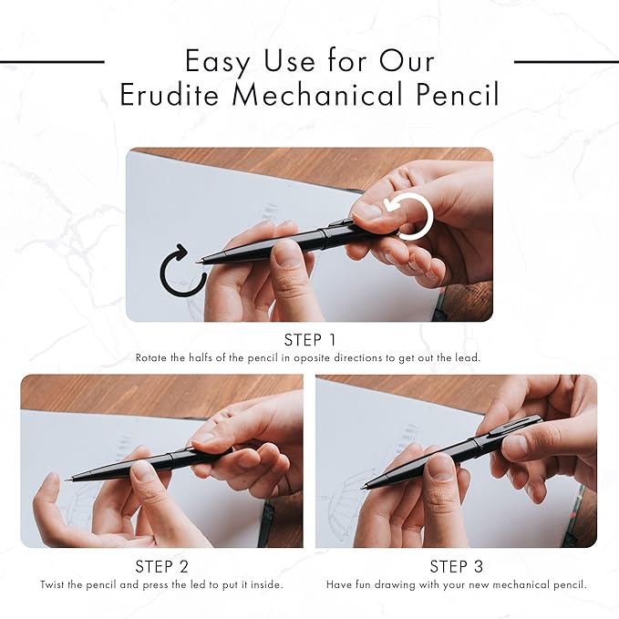 - โ HIGH-END PREMIUM PENCIL - The mechanical pencilโs lead requires no sharpening, allowing you to work more efficiently. With a smooth one-push operation, itโs perfect for drafting, technical writing, drawing, or sketching. Ideal for artists, architects, engineers, professionals, teachers, and students alike.