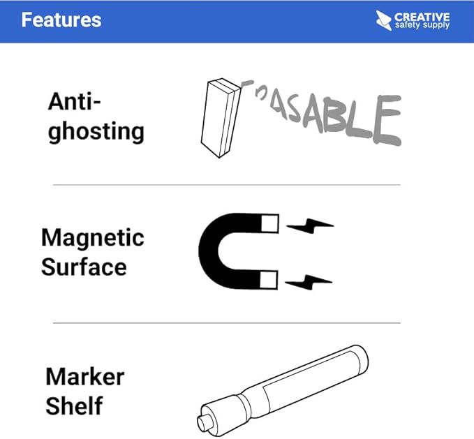 - Magnetic Dry-Erase Surface – Vinyl-printed surface resists stains and ghosting for long-term visibility and smooth writing performance