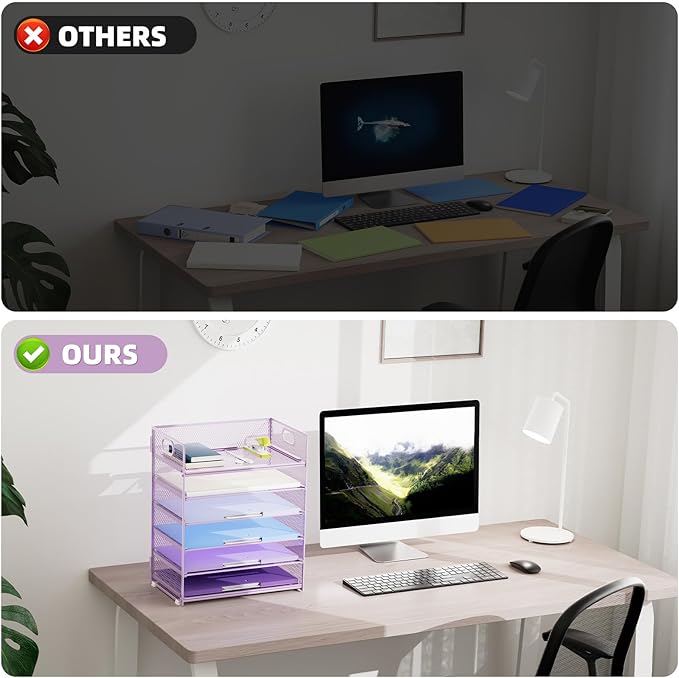 - 【MULTI-PURPOSE ORGANIZER】6-tier layered design and large capacity make the paper organizer become an ideal choice for managing all kinds of letter-size letters, paper, books, bills, etc. Let you quickly identify the contents of each compartment super easy