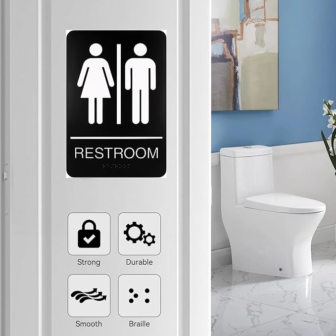 - 【Exquisite workmanship】:The bathroom sign is made of one-piece injection molding,complies with ADA raised graphics and braille standards,is durable,waterproof,heat or cold-resistant,if you have any questions,please contact us as soon as possible.