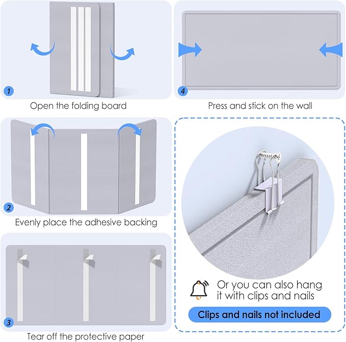 - FOLDING DESIGN: It adopts a 3-fold setting, which is portable and convenient to store without taking up space. The HOOK and LOOP FASTENER BACKING ADHESIVE adhesive design can be removed and displayed on the wall when needed. You can rest assured that the high-density board will not break after multiple tearing tests and no creases after unfolding.