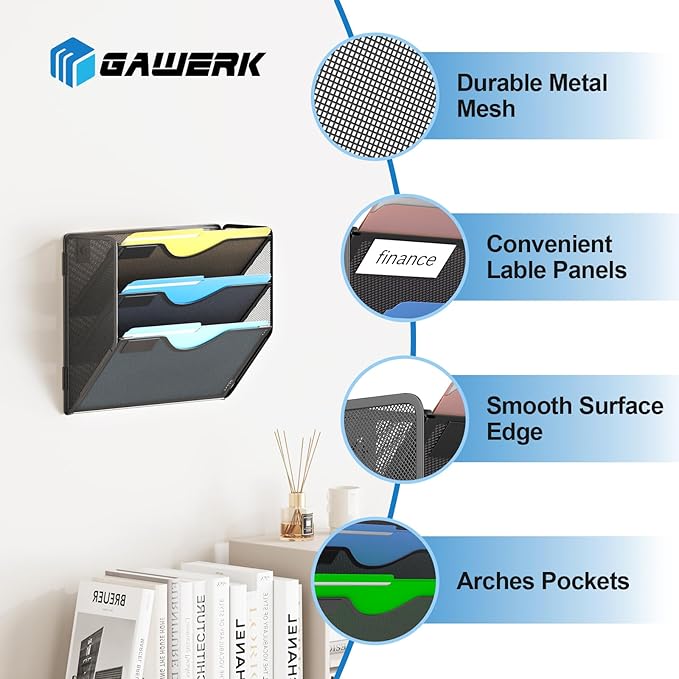 - ✏️ Easy Access to Files: The wall mounted file organizer features an arched design for easy access to the contents of your stored files.