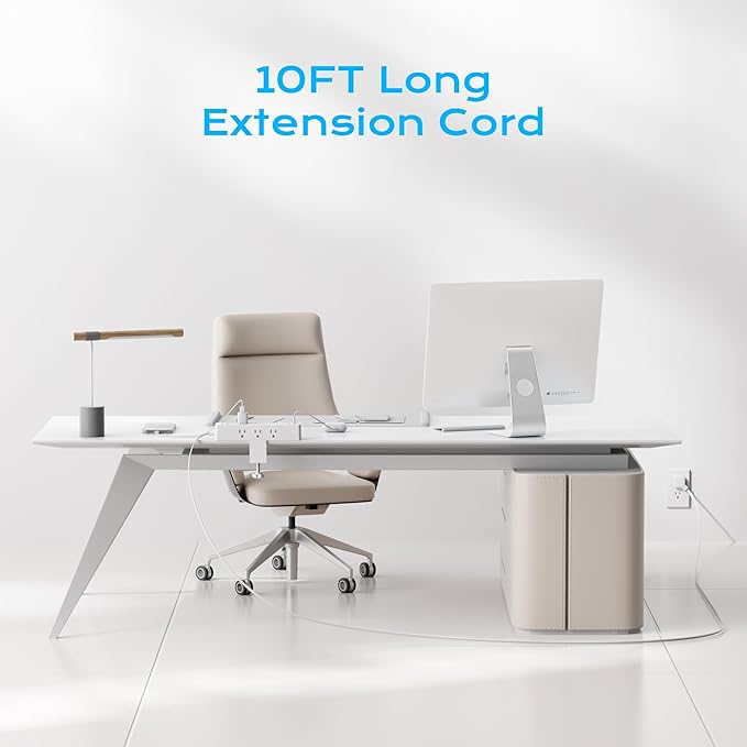 - Special Feature : Desk Mount Power Strip, 10FT Ultra Flat Plug Cord