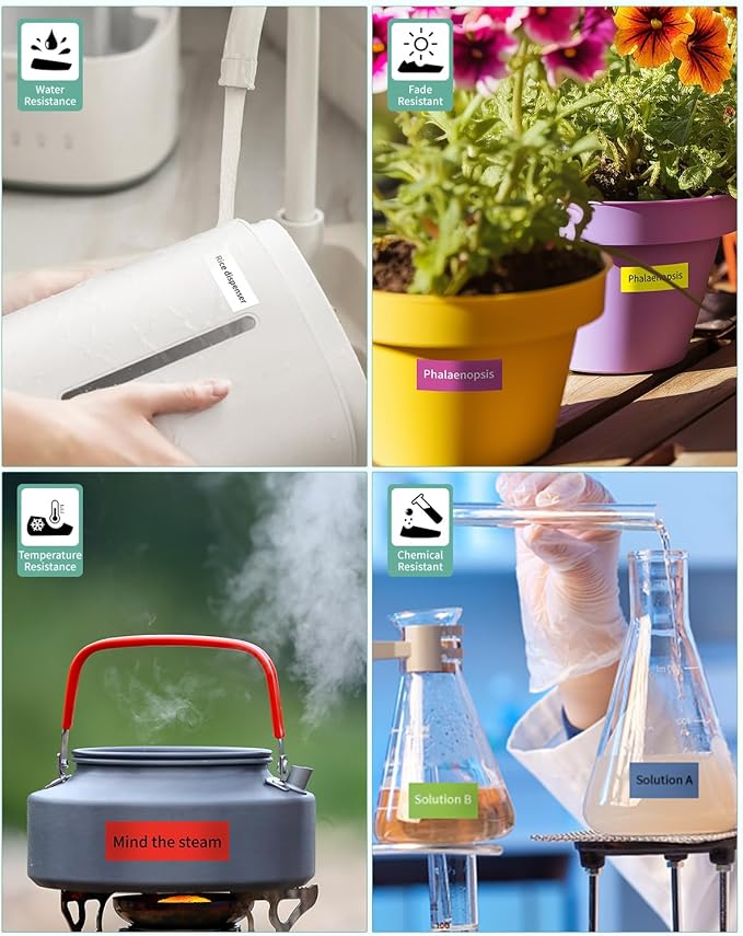 - Features: (1) Spilt-backing design for easy peeling and apply. (2) The 18mm 0.7 laminated white tz tape is adhesion, resistant, temperature resistant, water resistant, chemical resistant, fade resistant, UV resistant, abrasion resistant, grease resistant, grime resistant, and corrosion resistant