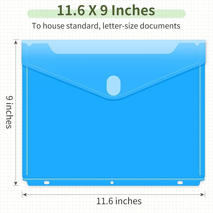 - Easy Classify & Look Up: 5 Assorted colors, blue, green, purple, yellow and red, 6pcs for each color. It is easier to distinguish different types of files with different colors. Meanwhile, translucent design allow you to find the documents easily without removing them from the envelope pocket.