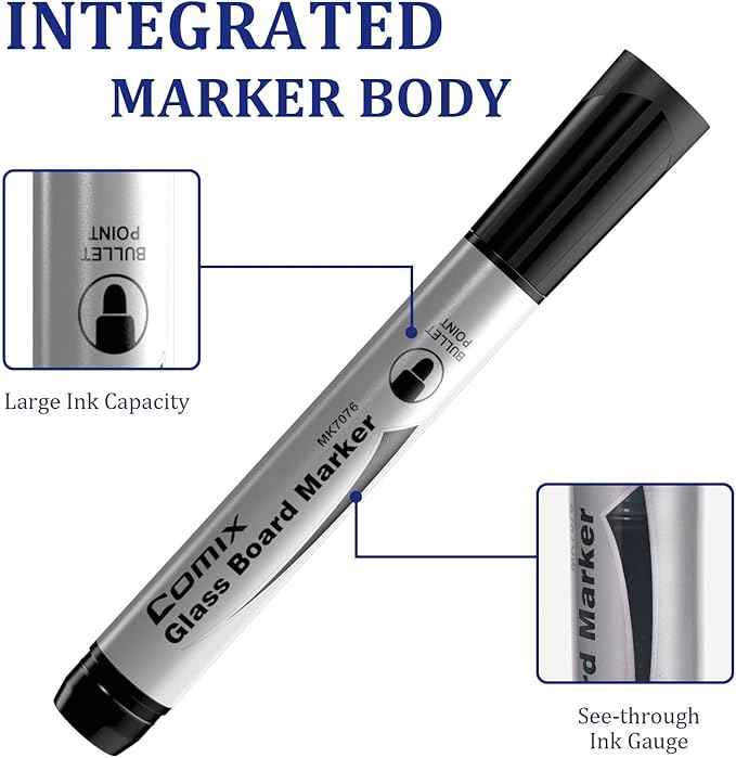 - Bold Color: COMIX premium glass dry erase markers are designed for use on glass surface whiteboards. They provide vibrant color with every writing stroke, ensuring that messages are clear and easy to read