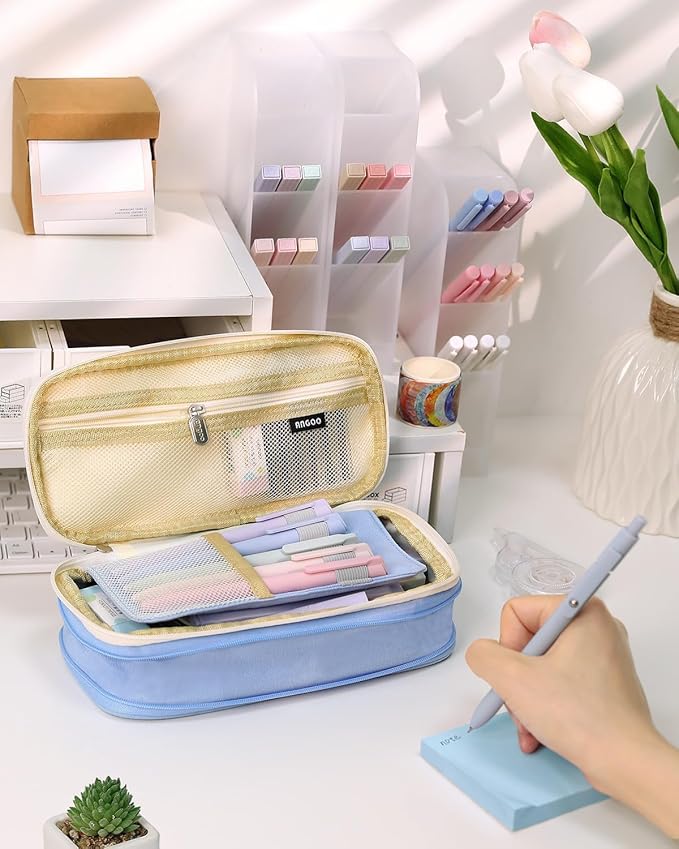 - 【Large capacity】 Pencil case size 8.66 x 4.13 x 2.56 inches with large capacity storage, can store up to up to 50 pens or 90 pencils, and can store small stationery in the mesh bag.