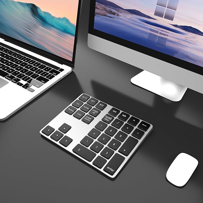 Foloda Bluetooth Number Keypad, Wireless 10 Keys Number Pad for Laptop, 34 Keys Rechargeable Numeric Numpad Key Pad Extensions Keyboard for Chromebook Notebook MacBook