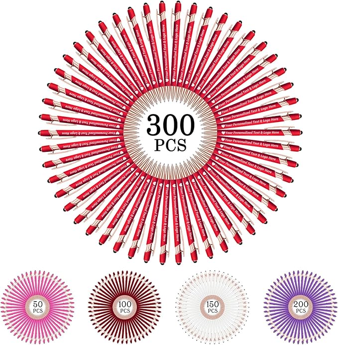 STREADVE 300 Personalized Custom Pens Engraved Writing Pen with Name Logo, Customized Promotional Items Stylus Pen Gifts for Women Realtor Reunion Wedding Business, Red