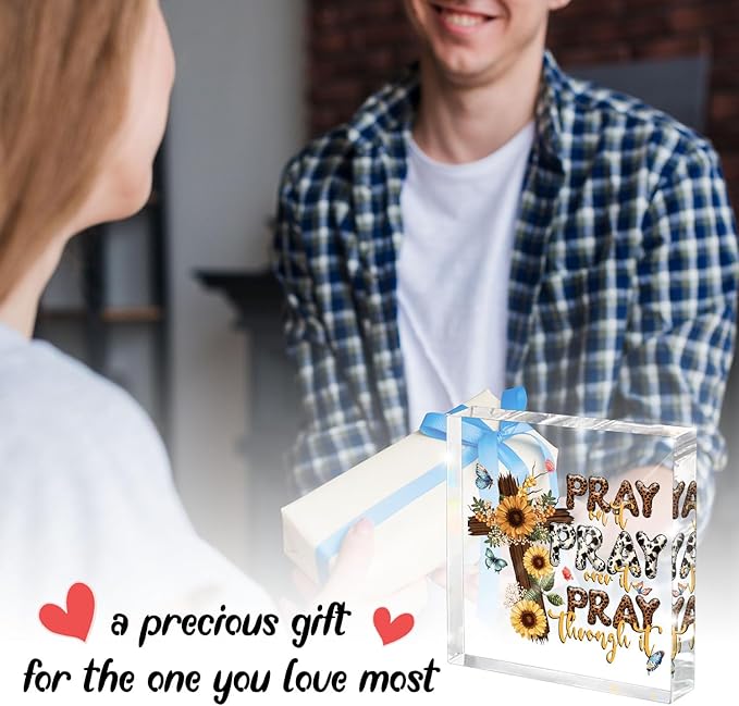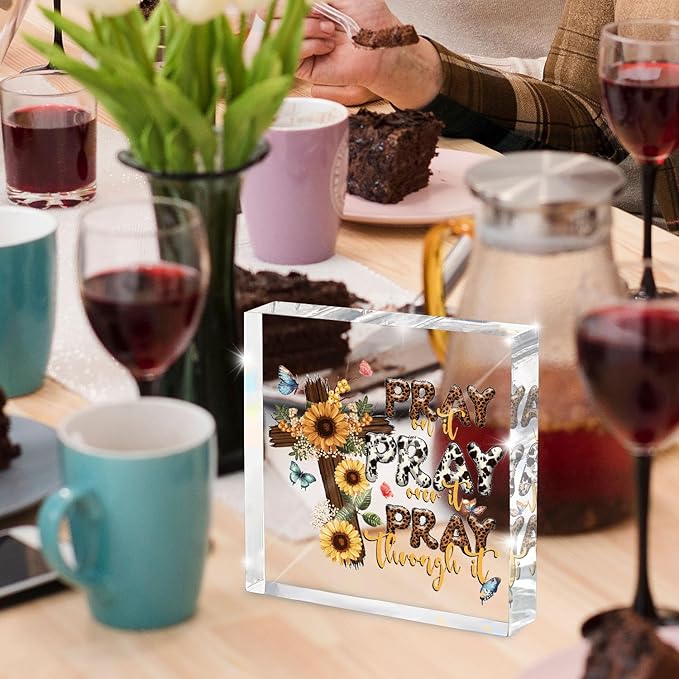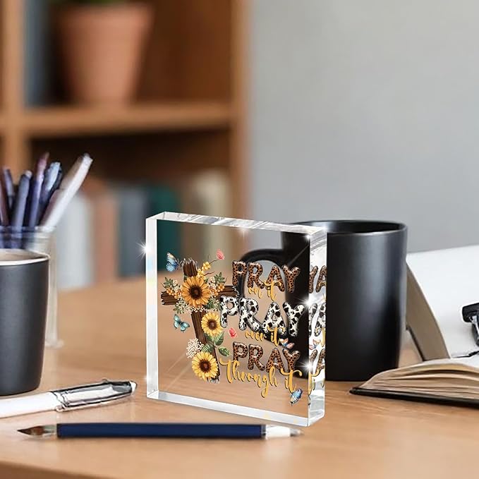 Power in Prayer Inspirational Decor, Pray Over It Bible Verse Wall Art Christian Gifts for Women, Scripture Desk Sign for Modern Home Office Room Bathroom Bedroom Decoration 4x 4 Inches (Leopard)