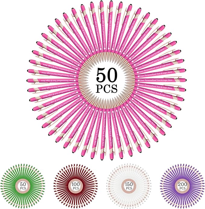 STREADVE 50 Personalized Custom Pens Engraved Writing Pen with Name Logo, Customized Promotional Items Stylus Pen Gifts for Women Realtor QuinceaƱera Wedding Business, Pink