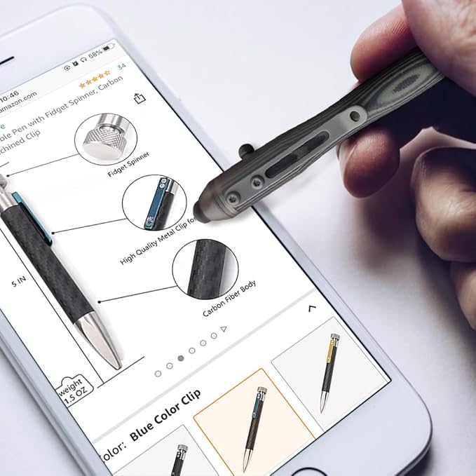 Cool Hand 5.7'' Bolt Action Pens, EDC Ballpoint Ink Refillable, Stylus for Touch Screen, G10 Body w/Pocket Clip, Ergonomic Grip, with a Free Refill, 5375-G