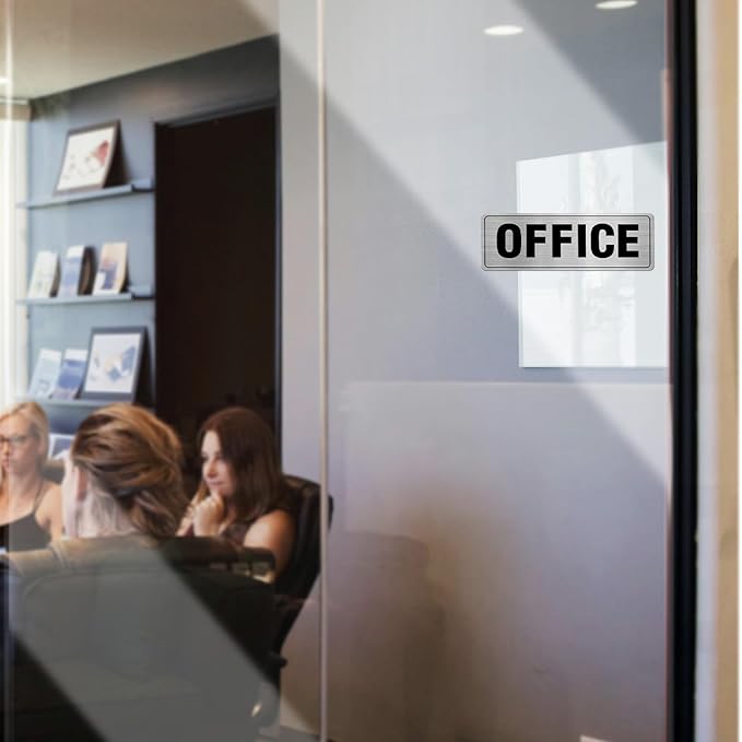 Office Sign Aluminum Silver 9 x 3 Inches Self-Adhesive Waterproof Metal Door Wall Sign for Business Offices 4 Pack