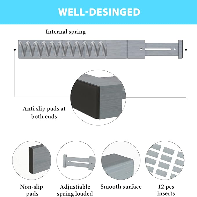 - DRAWER FRIENDLY DESIGN: The ends of our drawer dividers feature non-slip pads to keep them in place and protect your drawers from scratches, keeping your utensils, clothes and cosmetics safe enough