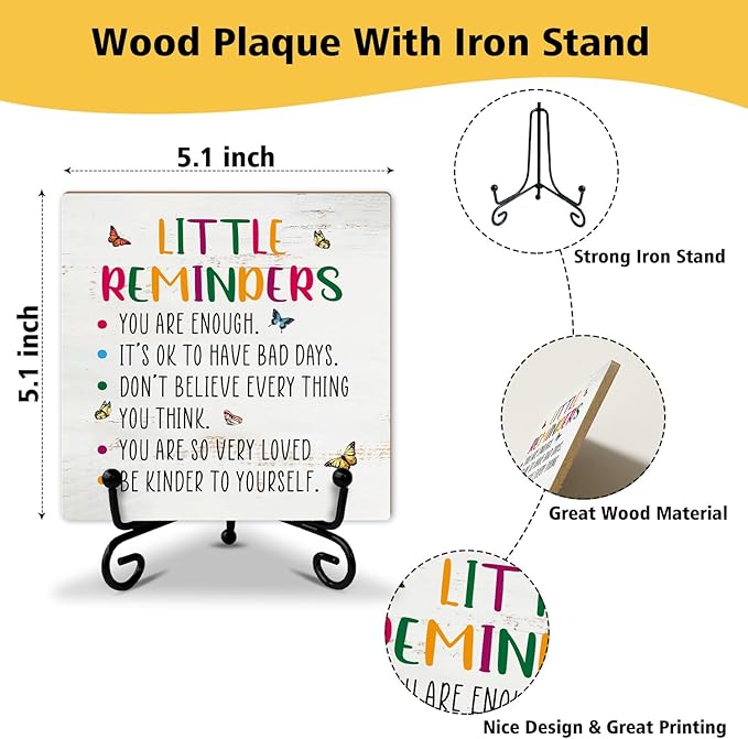 Mental Health Gift for Women Wood Sign with Stand - Little Reminder, Inspirational Gifts Motivational Gifts for Women Sister Coworker, Home Office Positive Decor Table Centerpiece Desk Plaque -38