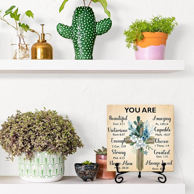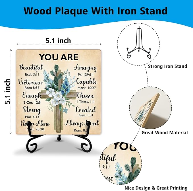 Christian Gift for Women Wood Sign with Stand - Bible Verse Religious Gifts Catholic Gifts for Her, Inspirational Spiritual Decor Home Office Decor Table Centerpiece Christian Decor Desk Plaque -33