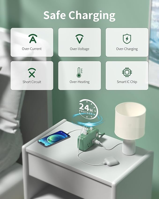 - Comprehensive Safety Features: The VPSUN power strip is certified with ETL, CE, FCC, PSE, and RoHS. It includes overload protection, short circuit protection, overcurrent protection, overvoltage protection, and overheating protection, ensuring your devices are safeguarded during charging, so you can use them with confidence. With its multiple outlets and USB ports, this charging station is a reliable extension cord with multiple outlets for your home or office