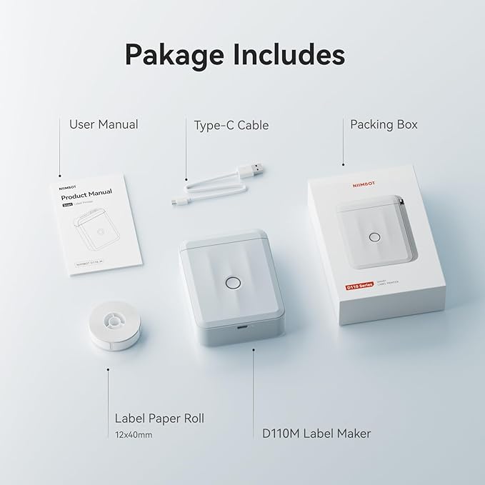 - 【Easy To Use】The bluetooth label maker with tape supports batch printing and wireless connection with ''NIIMBOT'' APP, which is simple setup & installation. No ink or toner required, compatible with IOS & Android smartphones. Fully charged in Only 2 hours with Type-C charging cord. Note: This label maker doesn't work with computers.