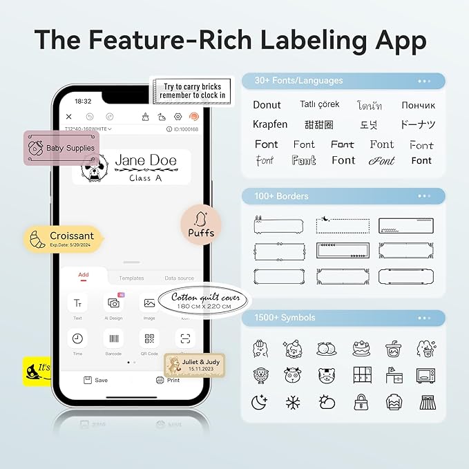 - 【Upgraded Print Quality】Label Makers with BPA-Free Direct Thermal Technology. Equipped with high-speed chips and 203 DPI, you can enjoy high-definition without relying on ink or toner. Built-in durable and recharge battery for long working time, slide into your pocket, easy to carry anywhere.