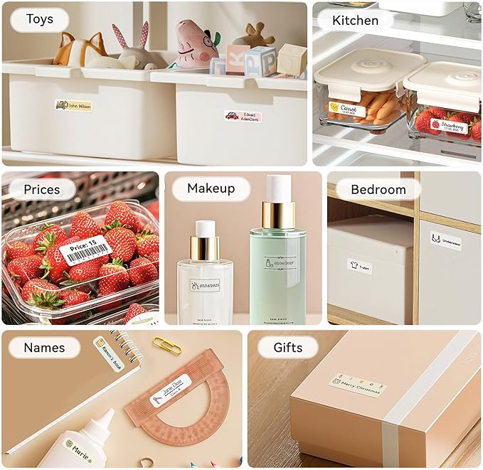 - 【Ideal Gifts】The NIIMBOT D110 Sticker Printer Machine is used widely in organizing home supplies - storage, food date marking, classifying cosmetics items, jar stickers; School name labels, study note and office files classification, cable identification, personal item identification, name tags; Small business - price tags, jewelry tags and more.