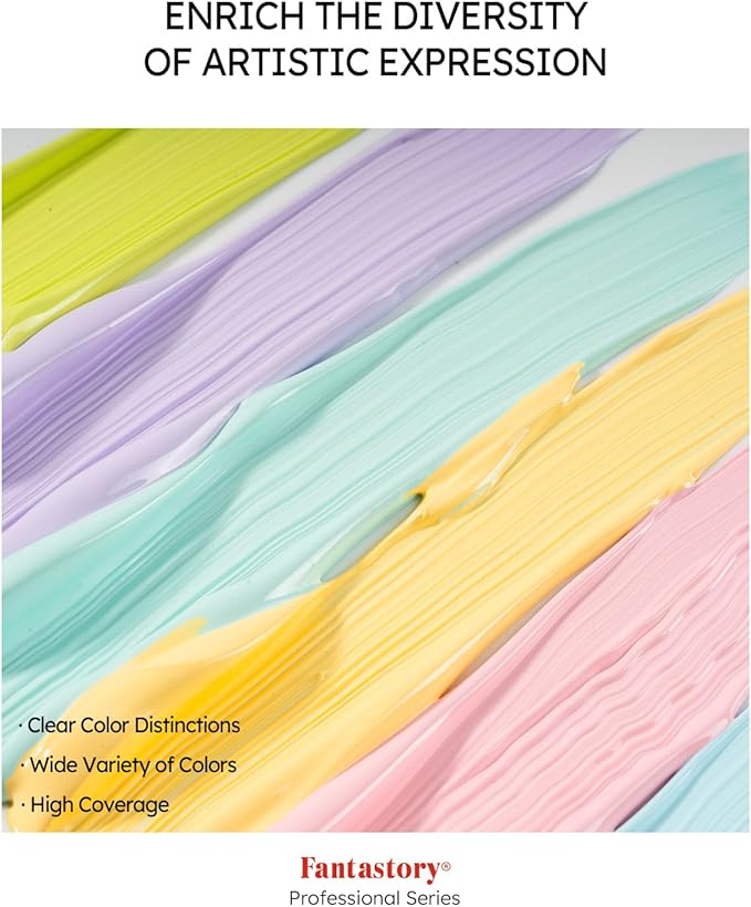 - Charming Pastel Colors: Fantastory 24-Color Pastel Paint Set features a creamy texture and exceptional coverage, showcasing soft pastel effects. Made with modern, lightfast pigments,Pastel paint ensures vibrant, long-lasting colors and excellent light stability, ideal for long-term use. Perfect for professional artists, painters, art instructors,dedicated hobbyists,and motivated beginner.