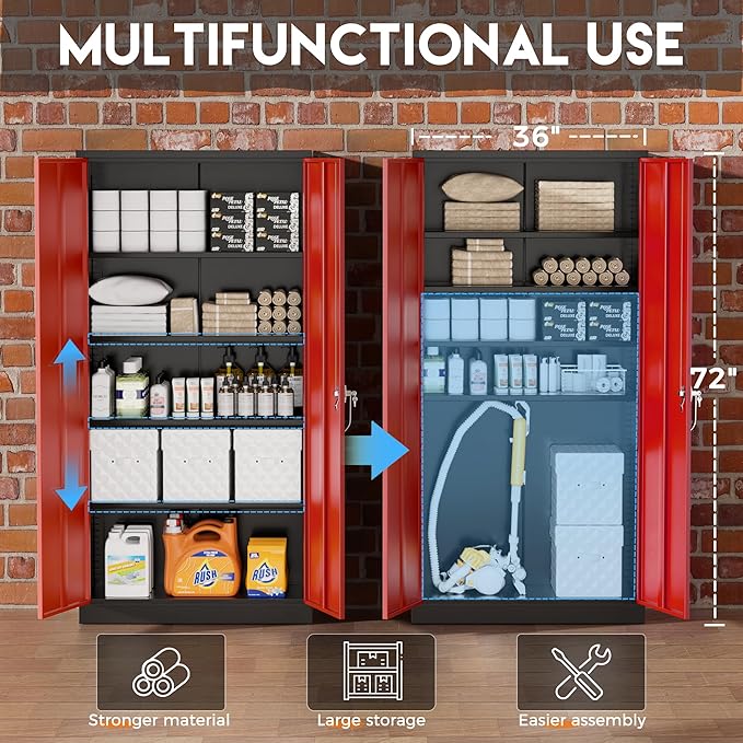 Greenvelly Metal Cabinet with 2 Doors and Adjustable Shelves, 72”H Steel Storage Cabinet, Locking Tall Metal Storage for Office, Home, Garage, School
