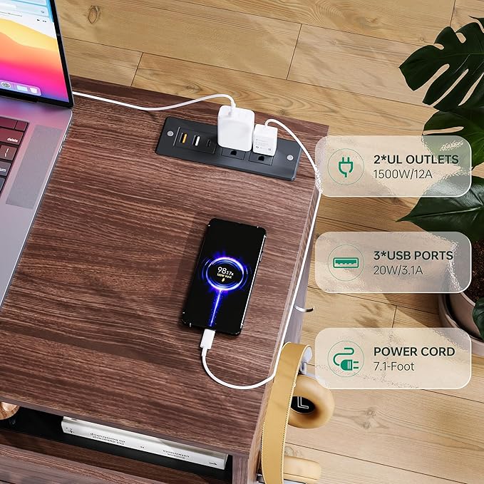 - 『Charging Easier』Home Office Filing Cabinet has 2 built-in power outlets(1500W/12A) and 2 USB 1 Type-C(20W/3.1A)charging ports to power up to 5 devices simultaneously,file cabinet can charge your printer, lamp, phone, Ipad, laptop simultaneously during work or study.