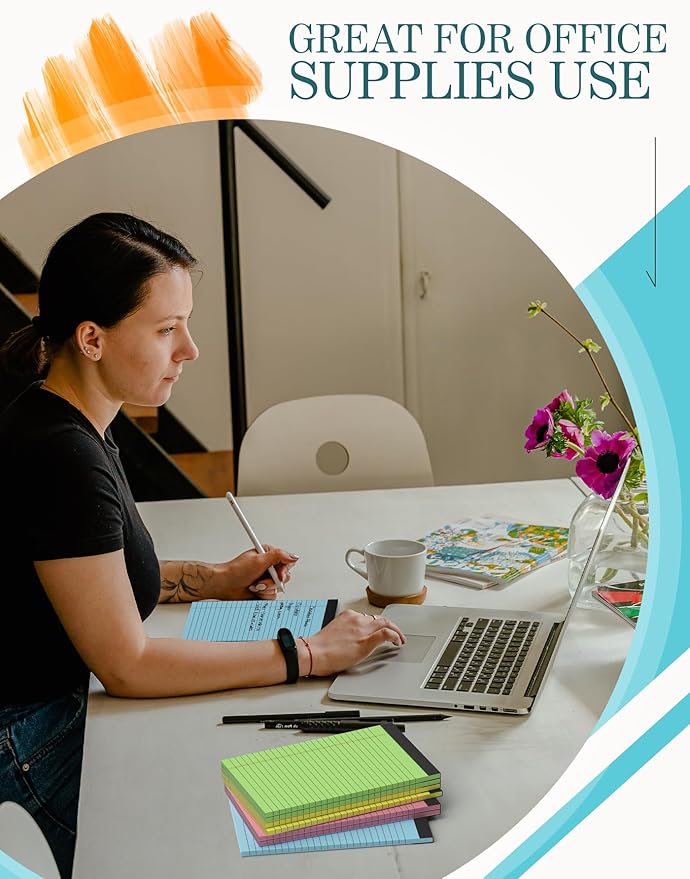 - 【MICRO PERFORATED】- Notepads 5x8 sheet is designed with perforations at the top. Sheets measure 5x7 when torn out. These rows of small holes let you separate a notebook paper sheet from the rest of the pad without damaging the binding. Small legal pads 5x8 colored allowing you to remove pages effortlessly without damaging the sheet.