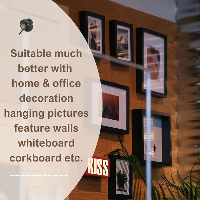 - Secure Hold: Despite their compact size, these hanging nails and thumb tacks boast impressive strength, securely supporting up to five pounds each. Perfect for picture frames, tapestry hangers, and other wall decorations, you can trust these wall tacks for hanging to keep your items firmly in place