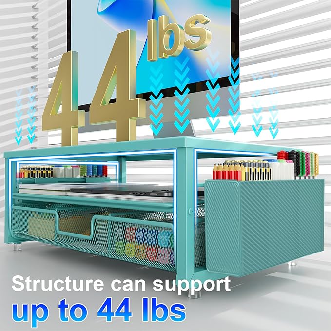 - 【Unique Desk Decor】: The monitor stand has a classic blue coating, adding elegance and modernity to your office while being sturdy and practical. allowing you to work in a cozy and tidy environment with greater comfort and efficiency.