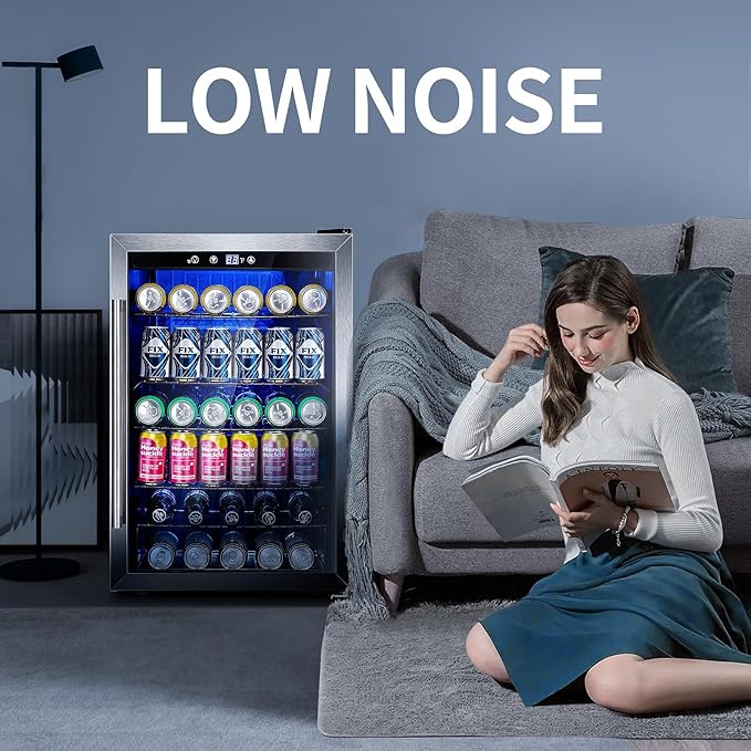 - ESSECTIVE BEVERAGE COOLER: This beverage refrigerator runs on a powerful but quiet compressor. Soft LED light making it easier to find a drink. This cooler equipped with glass shelves, so beautiful for you room.